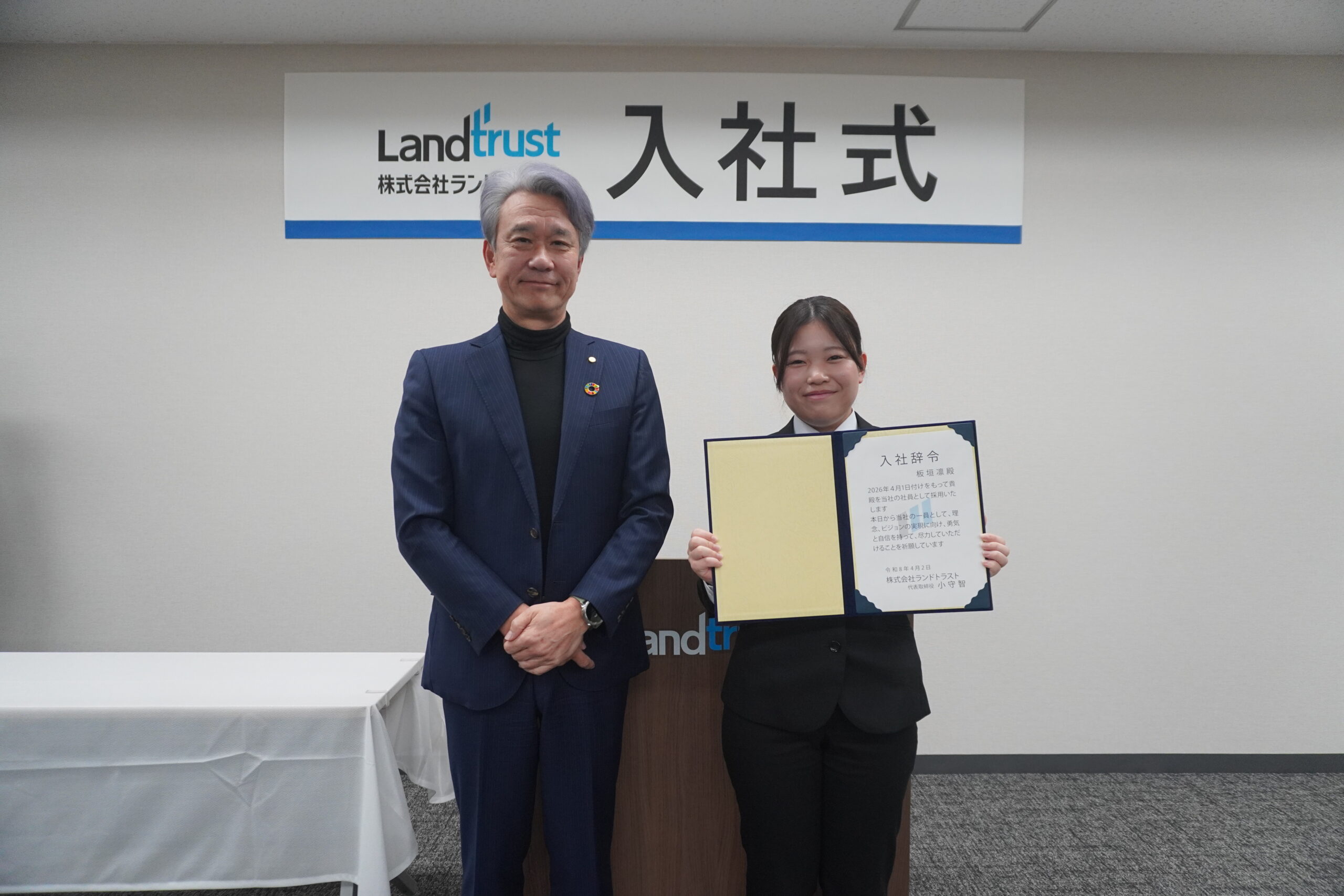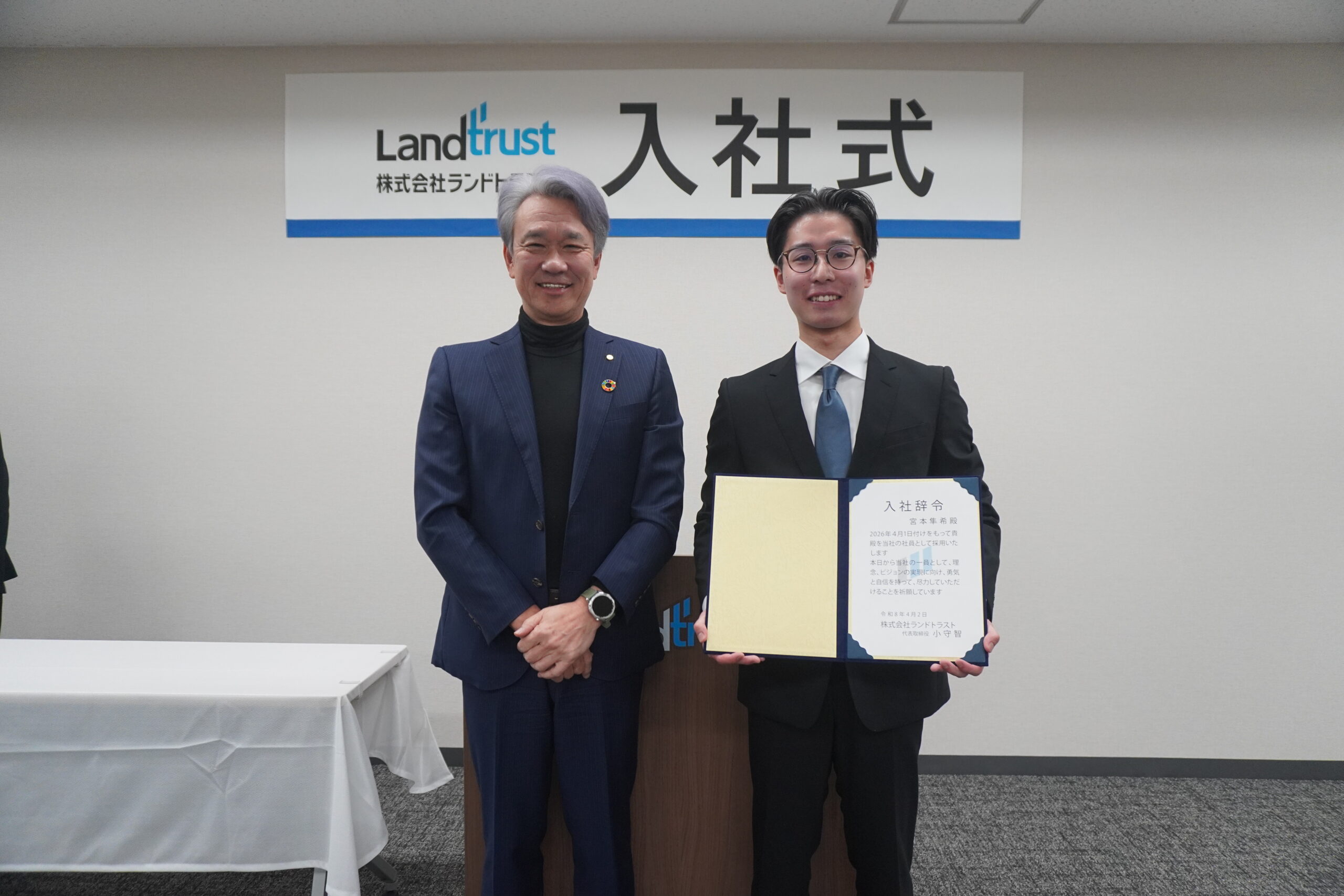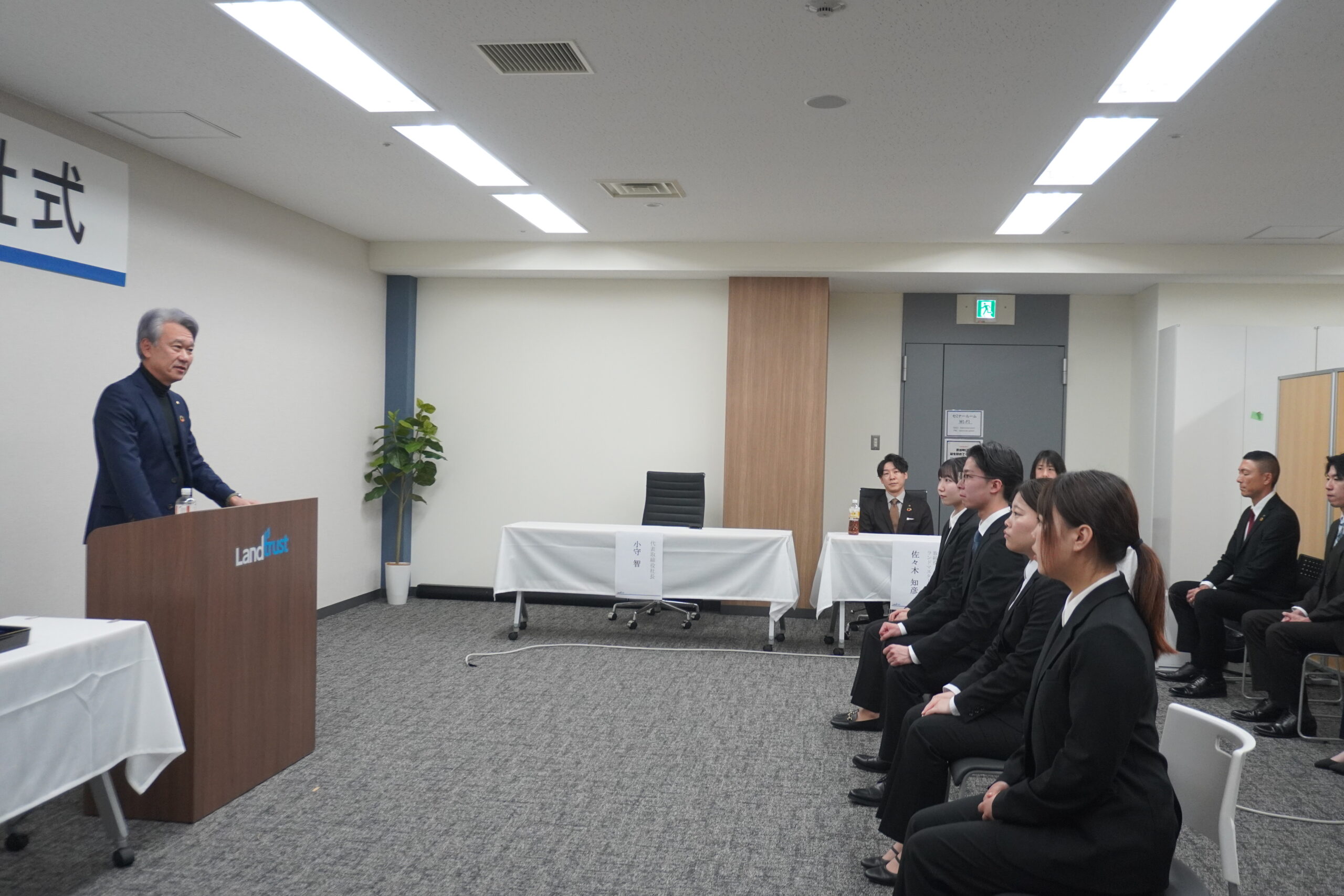 「評価の基準を自ら上司に問い、自らの価値を定義せよ」という、ランドトラストらしい攻めの心得が説かれました。 「何を目指すべきか」を上司に直接仰ぎ、期待を超える成果を取りにいく。そのプロフェッショナルな姿勢の重要性を、4人は食い入るような視線で受け止めていました。その真っ直ぐな向上心は、すでに良きビジネスパーソンの片鱗を感じさせるものでした。