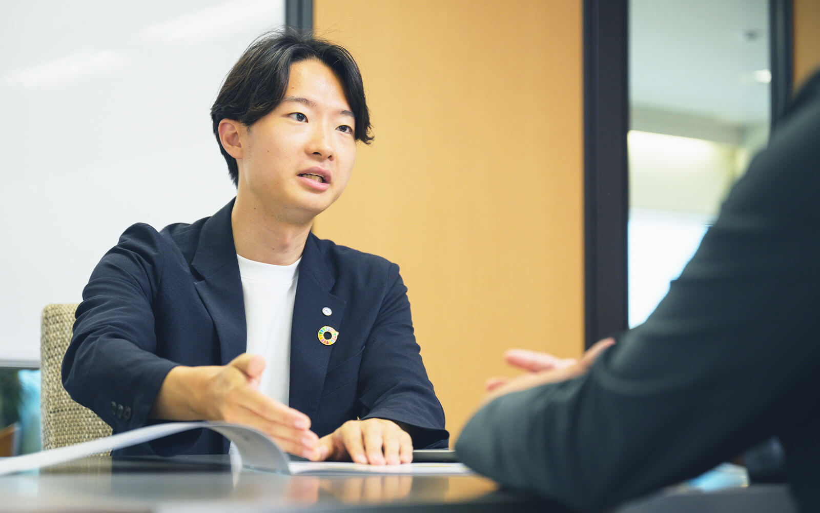 私が宅建を取得したのは、大学時代。きっかけは、親の実家にある工場の将来について考えるようになったことでした。いざという時に家族の力になれたら。そんな思いから、不動産に関する知識を身につけようと決めたんです。それが、不動産に興味を持つ入口になりました。法人営業がやりたいと考えていた私にとって、BtoBのビジネスを主軸とするランドトラストは、まさに理想的な環境でした。他社からも内定をいただいていましたが、築古・駅遠といった、一般的に借り手のつきにくい物件に特化した独自のビジネスモデルに惹かれ、早い段階で入社を決意。こうしたユニークな取り組みを行う企業は他にないと感じたのが決め手でした。加えて30代前後の社員が多く、年齢層が若い点も魅力でした。フランクで話しやすい人が多く、常に新しいやり方にチャレンジしようという前向きな空気があり、風通しもいい。成長意欲を持って働ける、そんな環境だと実感しています。