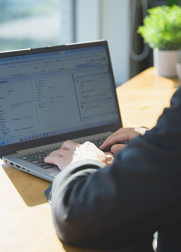 出社後はメールや社内チャットの確認、週の初めには営業所で会議を行います。